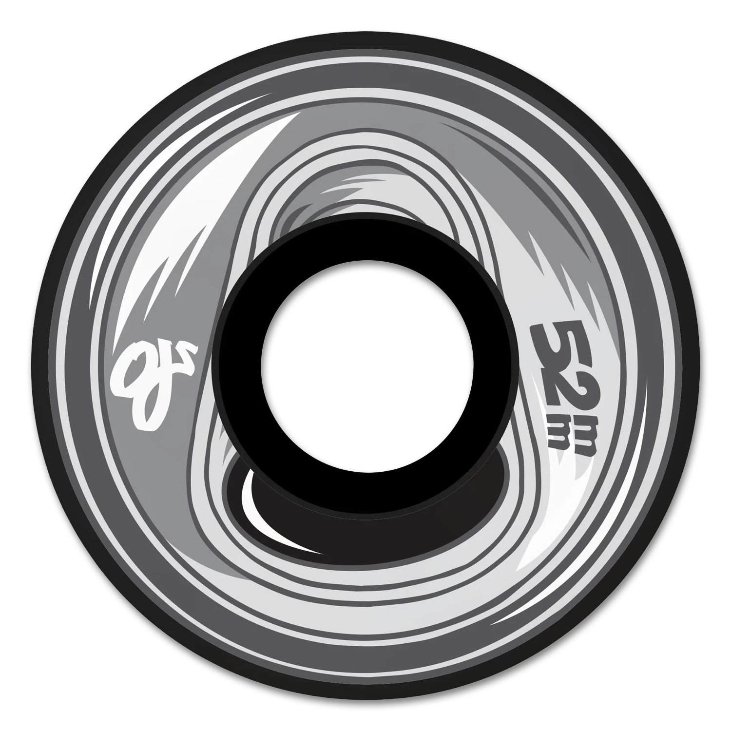 Faster than words! OJ Wheels 52mm, 92a Frozen Energy Keyframe wheels black with cool grey can top graphics and custom can packaging. Blaze the roughest terrain with the raw energy of new 92a urethane!